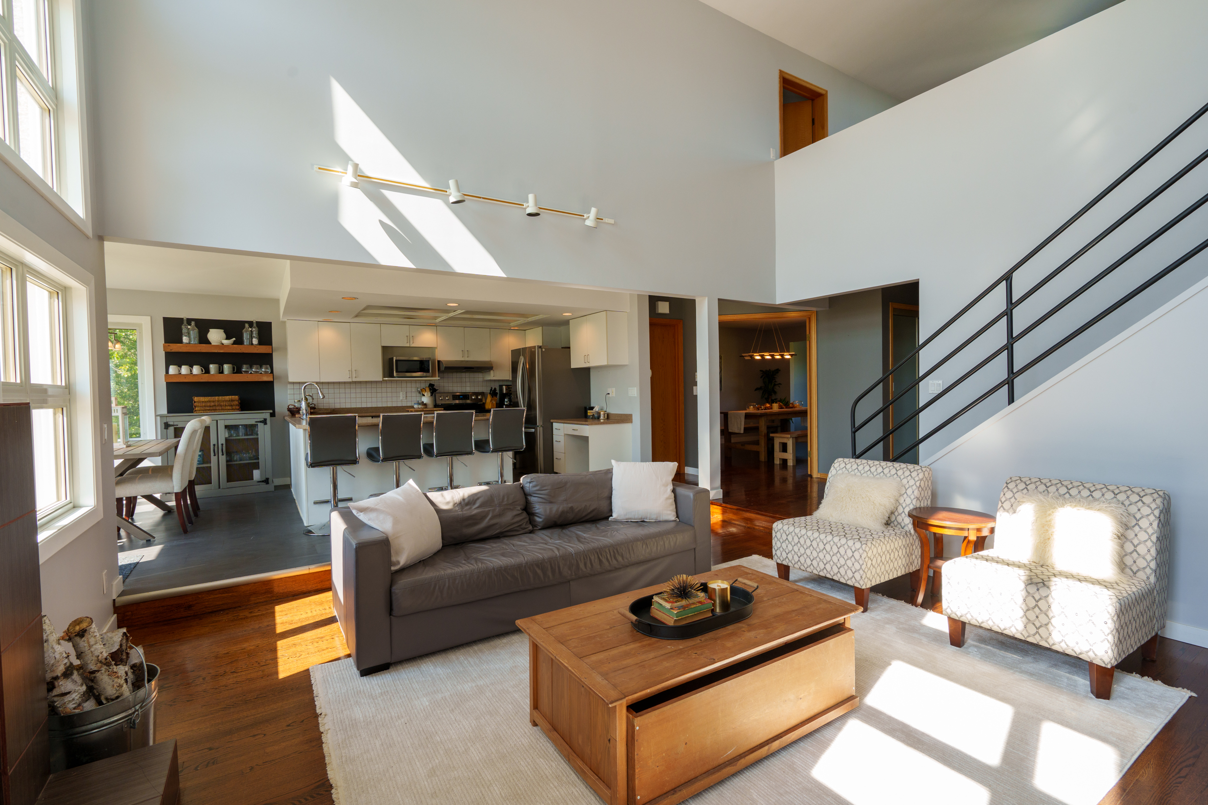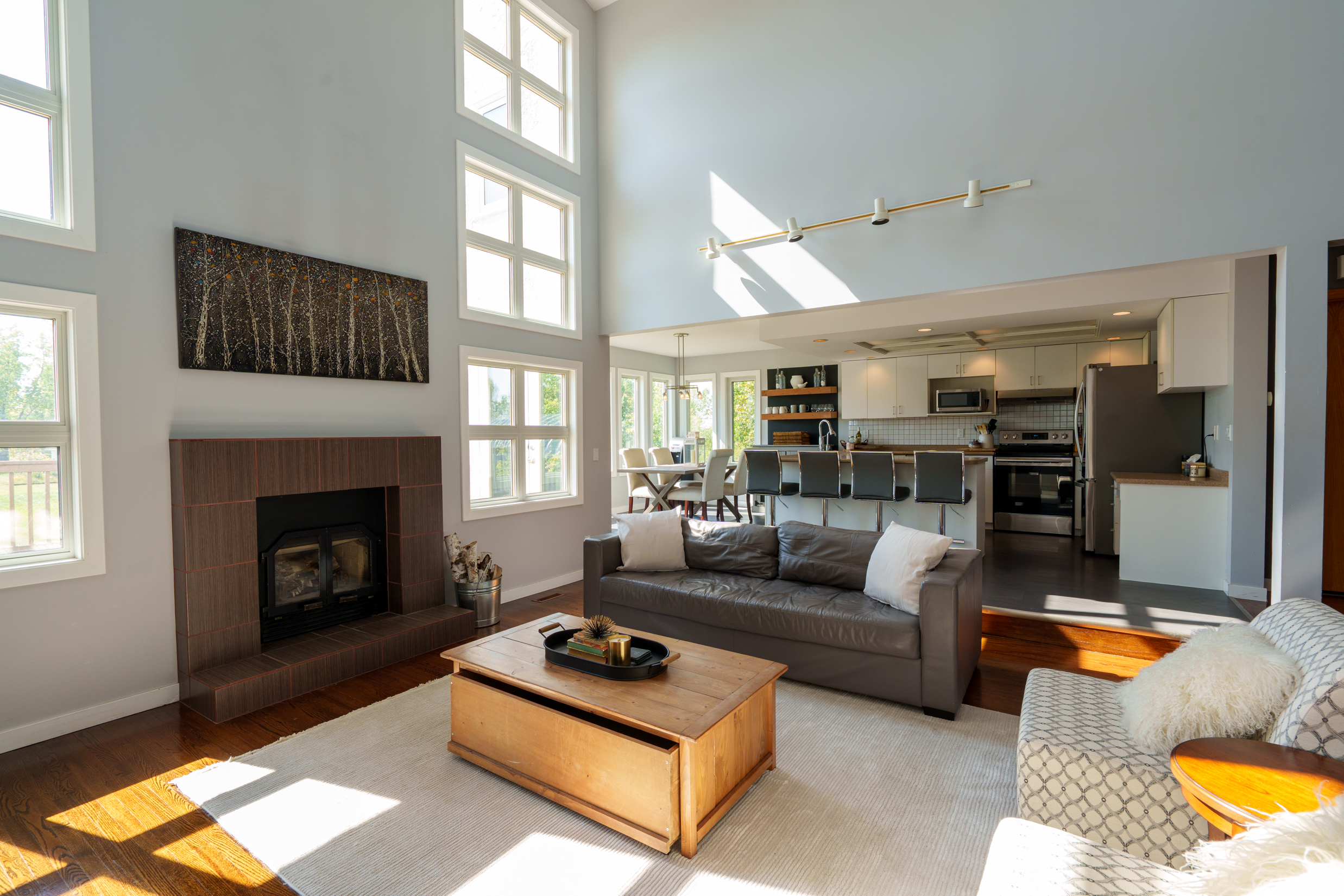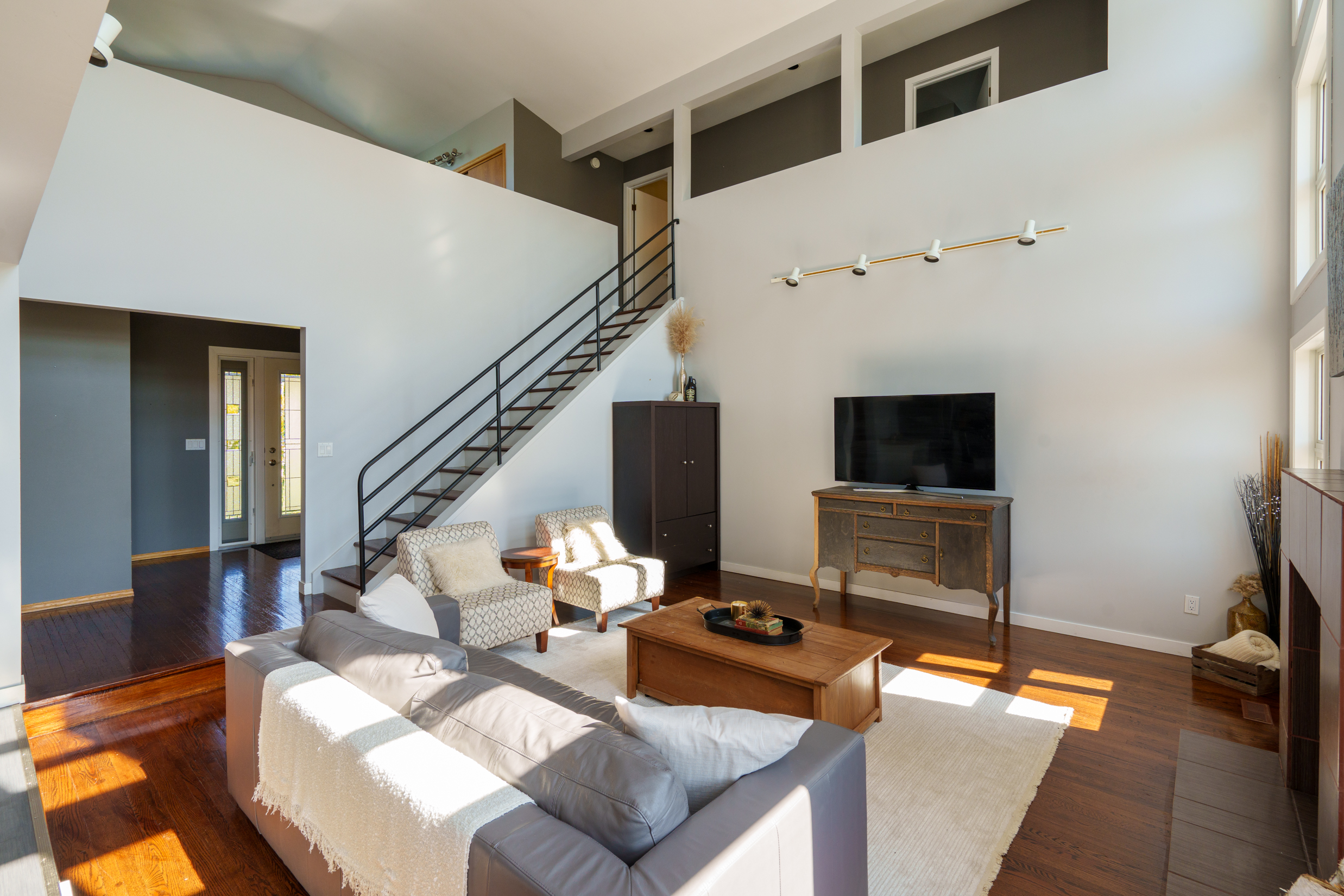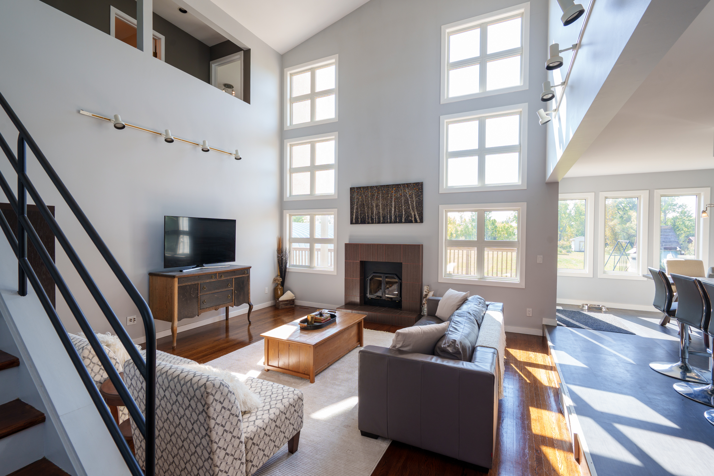 Impressive Great Room with Towering Ceilings and Statement Architecture